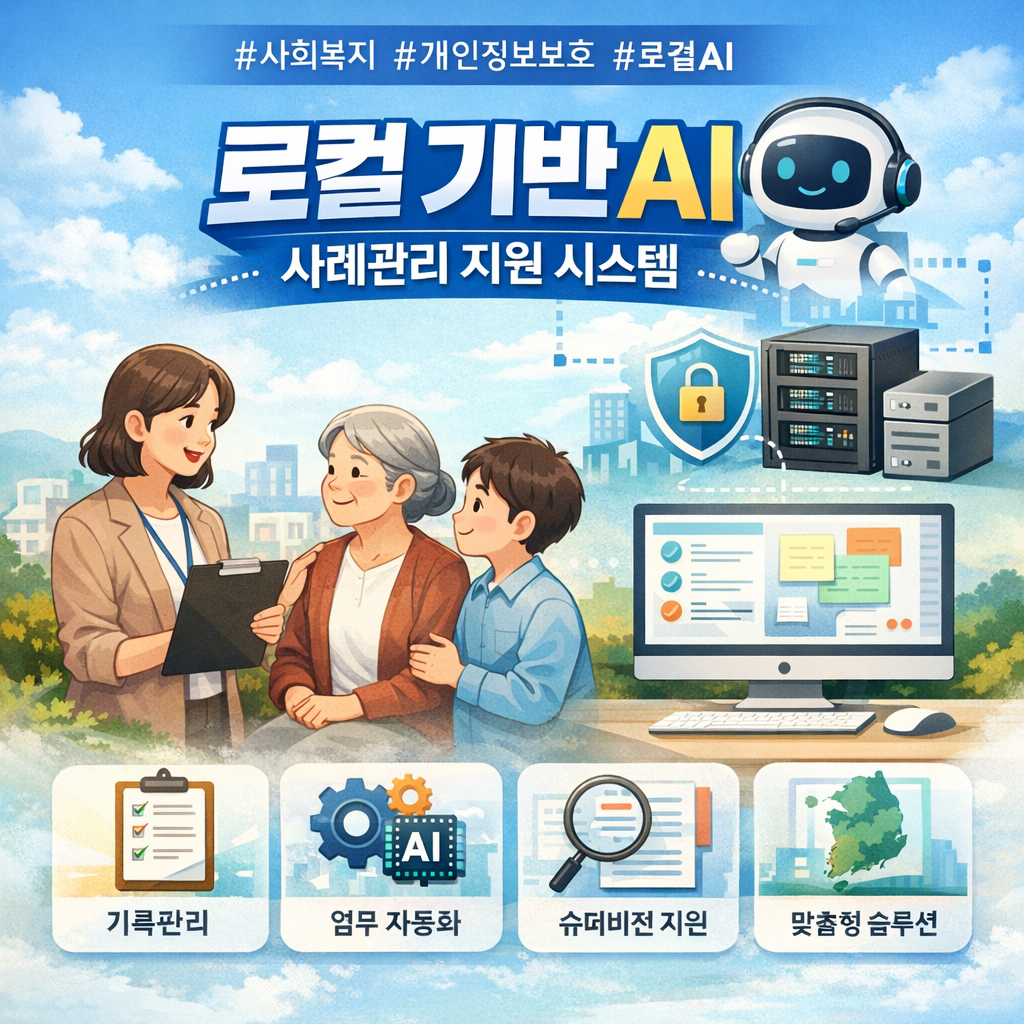 프로젝트 요약개인화 사례관리를 위한 로컬 기반 AI 지원 시스템사회복지 현장에서 사례관리는 개인과 가족의 다양한 욕구를 파악하고, 적절한 서비스를 연계하는 핵심 업무입니다.하지만 실제 현장에서는 사례관리자의 경험과 주관에 따라 기록 방식과 판단 기준이 달라지고, 기관마다 사용하는 용어와 절차도 상이해 서비스 품질의 일관성을 유지하기 어렵다는 문제가 꾸준히 제기되어 왔습니다.또한 최근 AI 기술이 빠르게 발전하고 있음에도 불구하고, 외부 클라우드 기반 AI 도구는 개인정보 유출 우려와 법·제도적 한계로 인해 사회복지 현장에서 실제로 활용하기 어려운 상황입니다.기술의 필요성은 분명하지만, 현장에 적용하기에는 높은 장벽이 존재하는 것입니다. 해결하고자 하는 핵심 문제이 프로젝트는 사회복지 사례관리 현장에서 반..