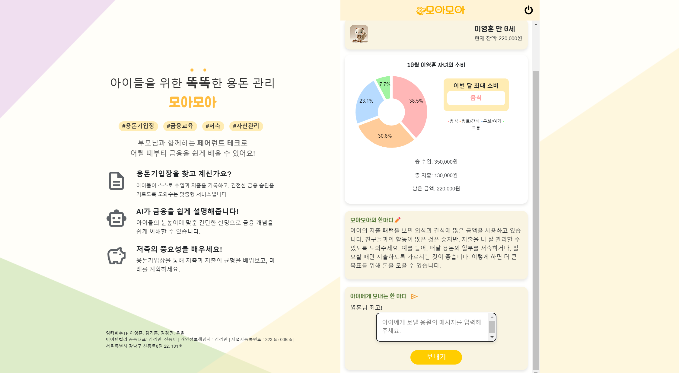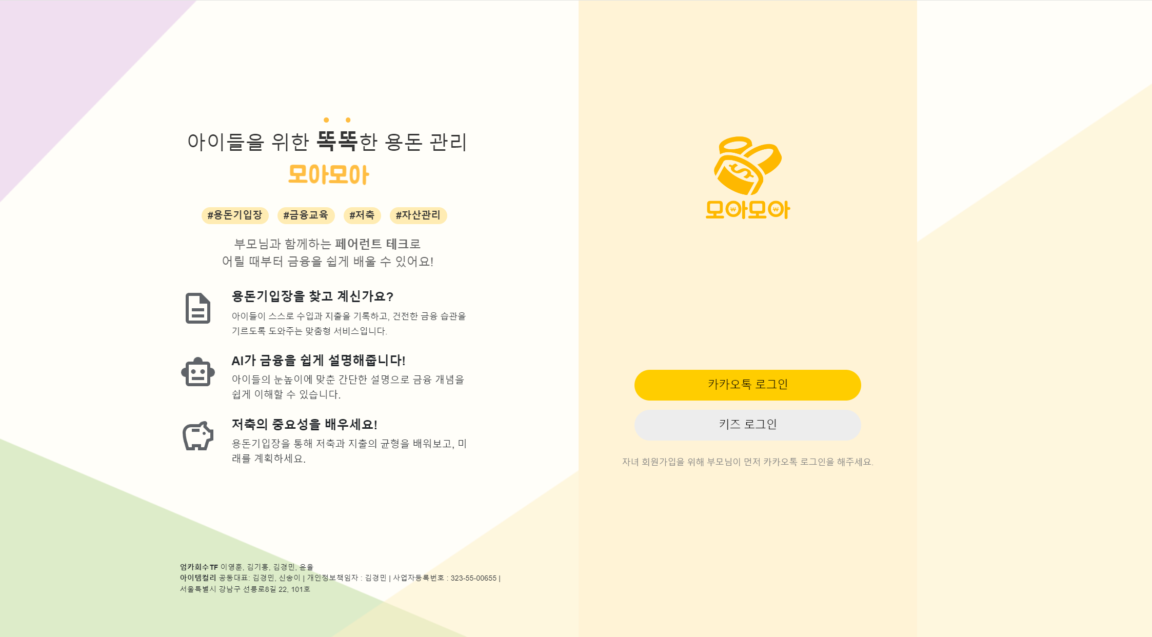 부모에게는 자녀 교육의 보조 도구가 되어주고, 아이에게는 잔소리꾼이 아닌 친절한 금융 친구가 되어주는 서비스, '모아모아'. 아이들을 위한 핀테크 서비스가 나아가야 할 좋은 방향성을 보여주고 있습니다.