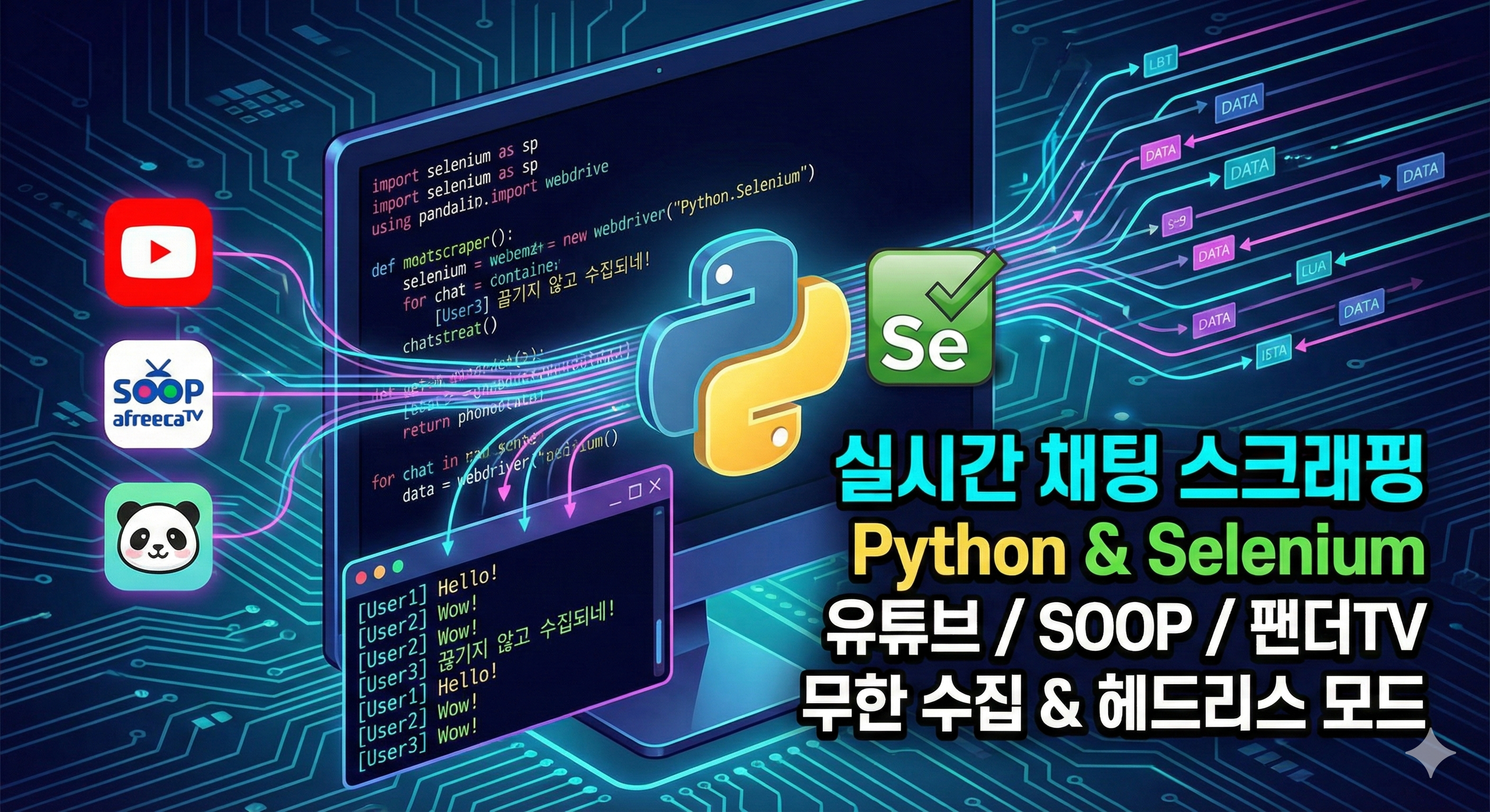 처음에는 주식 방송의 채팅 분위기를 분석해서 대시보드를 만들어보자는 아이디어로 시작했습니다. 하지만 대시보드를 만들려면 우선 데이터(채팅 내용)가 필요했죠.